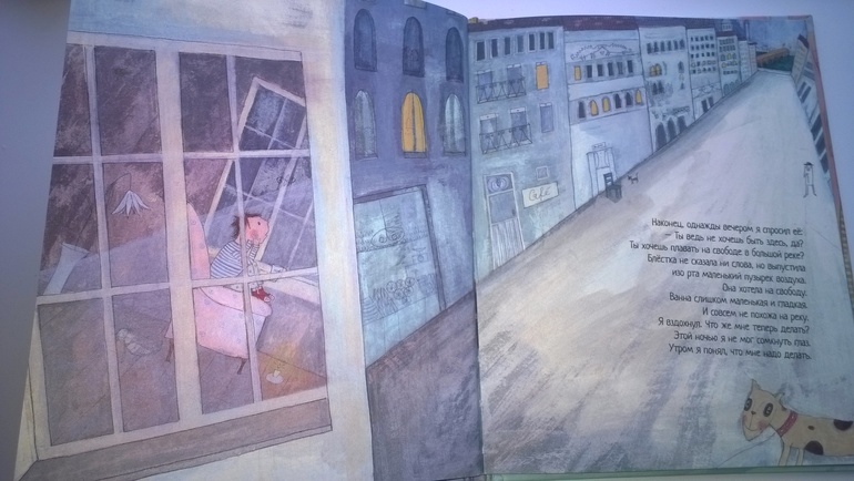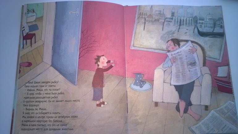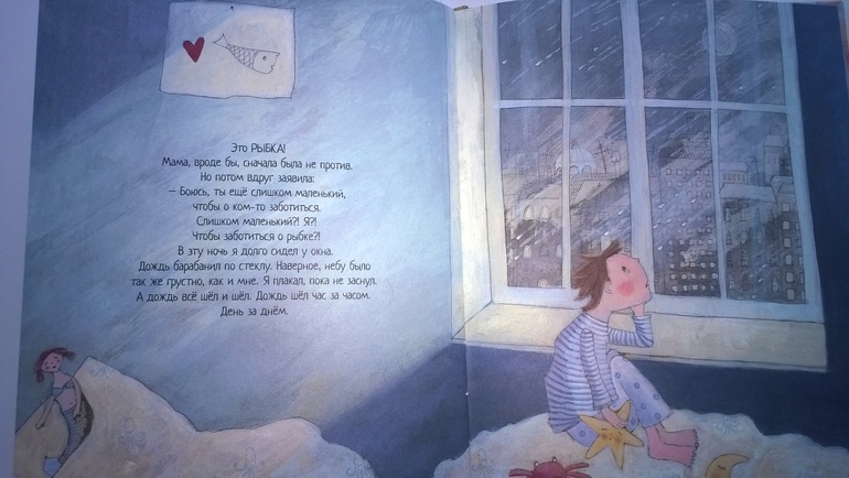 Светик, мне показалось, или всё-таки пропущен один разворот в конце?Мама повела в комнату, а там... и потом же он с аквариумом на берегу реки...А вообще спасибо, что так подробно показала)) Правда хорошая))) Иллюстрации угловатые немного, но зато история добрая, заставляет задуматься...