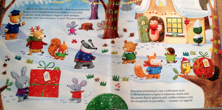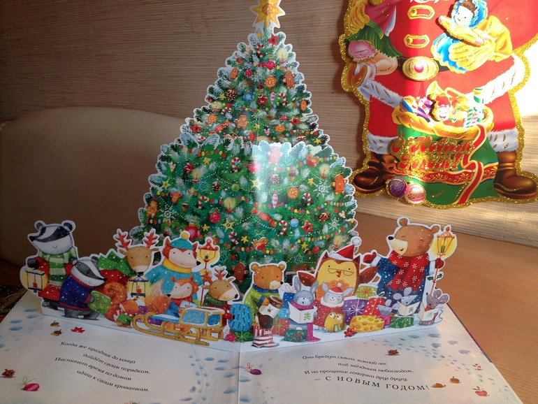 Меня эта книга точно не оставила равнодушной. Тут есть все для этого: лес, животные и клапаны! Как известно, заглядывать под них - больше удовольствие. А в конце ждет сюрприз - большая елка!