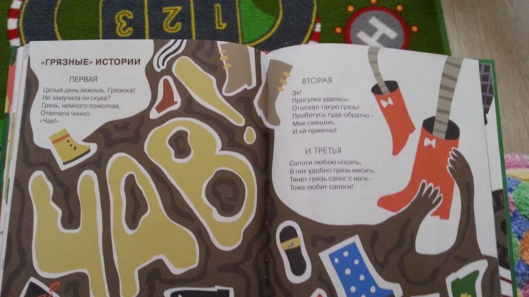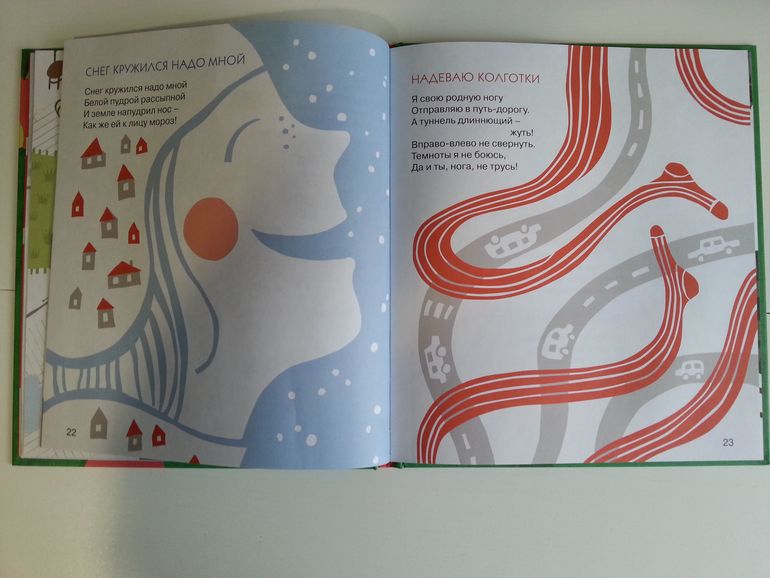 довольна теперь как слон. В итоге книга мне очень понравилась, хотя к иллюстрациям конечно нужно привыкнуть. Зато большинство стихотворений понравилось мне очень, выучу наизусть, потому что они особенно хороши, чтобы их приговаривать в нужный момент. Когда я, одевая сына, стала приговаривать "я свою родную ногу отправляю в путь-дорогу",