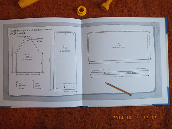 Я думаю, что книгу можно читать уже в полтора года, в два она станет очень популярной, а в три года мы собираемся сделать ящик инструментов. Кстати, чертеж прилагается в конце книги. Осталось дело за малым: определиться с материалами.