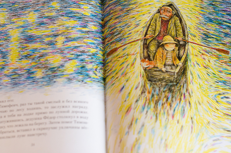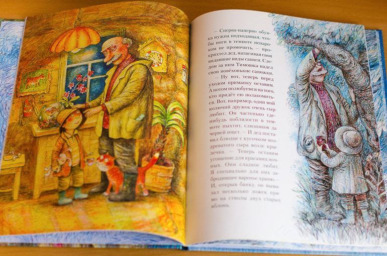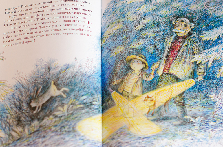 Книжка, честно скажу, была куплена ради рисунков и в надежде, что на следующее лето, мы поедем в деревню с этой книгой. И наш дедушка прочтет ее и может даже сводит нас на такую увлекательную прогулку.