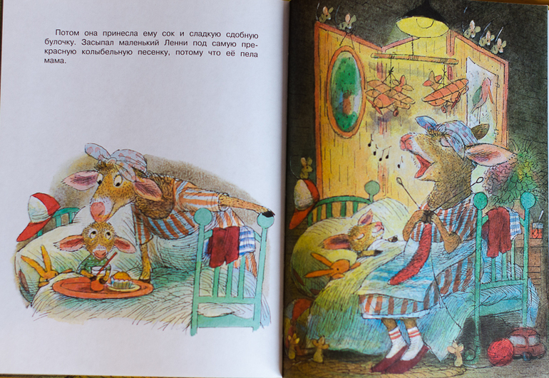 А третий рассказ, похож на сказку про глупого мышонка, немного с другим концом. Маленькому ягненку на ночь пели все животные в округе , но мамин голос лучше убаюкал малыша.