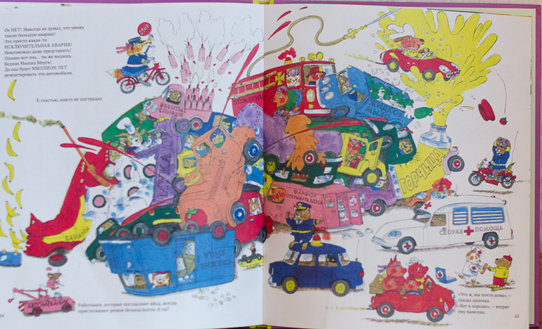 Вот и вся книга, художественного текста так нет. Страниц много, поэтому в конце книги язык заплетается, а мозг закипает, придумывать и перечислять. Каких только машин здесь нет, такое ощущение что колесами обзавелись все предметы вокруг. Даже те на который очень опасно выезжать на дорогу, тем более на автостраду, но это явно не заботило автора. У него в одном потоке едет и гоночная машина и детская коляска и одноколесный велосипед, мне лично страшно становится.