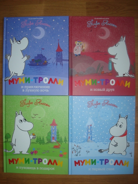 Муми-Троллей мы тоже прочитали, но всё-таки я решила их убрать лет до 4-5, а на сейчас купили вот такие, по мотивам историй Т.Янсона о Муми-Троллях