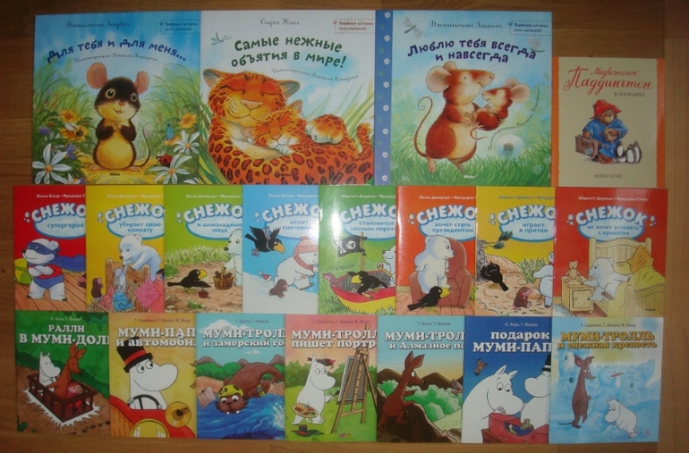 Случайная покупка в книжном нескольких тонких книг о Муми-Троллях и медвежонке Снежке, привела к их до покупке, и появлению у Маруси нового супер хита - Медвежонка Снежка! Перечитали мы их бессчетное количество раз, а потом я их убрала, иначе бы мы больше ничего и не прочитали...