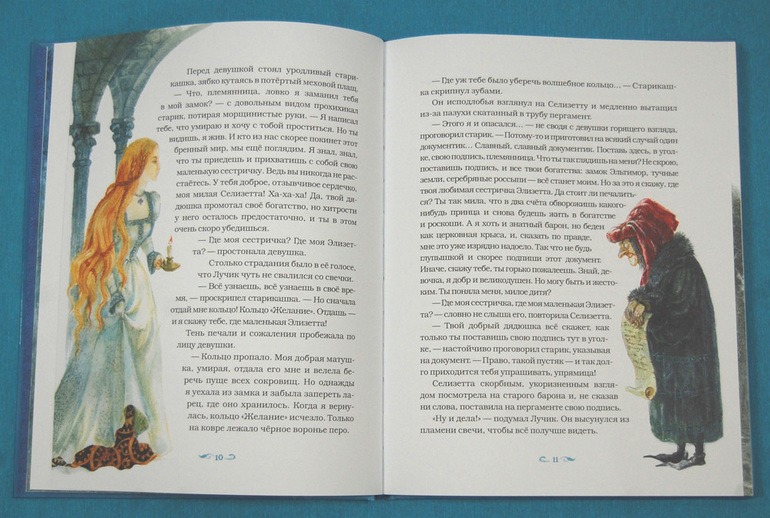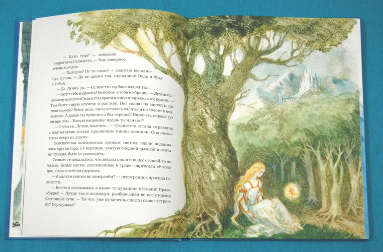 «Ветер завывал и свистел. Лоб Селизетты уколола первая снежинка. Кругом были голые скалы, окружённые полосками снега. Воздух как будто сгустился, казалось, лунные лучи побелели от инея.