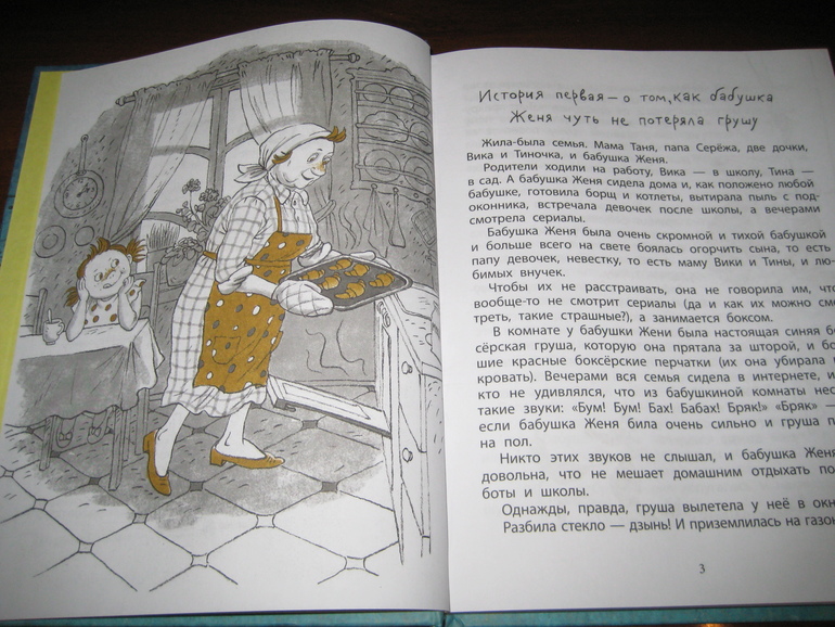 "Сын бабушки Жени, папа девочек, очень заботился о своем здоровье и о здоровье близких и поэтому долго уговаривал бабушку Женю поставить искусственные зубы. Чтобы его не огорчать, она согласилась. Правда, жевать ими было не очень удобно.