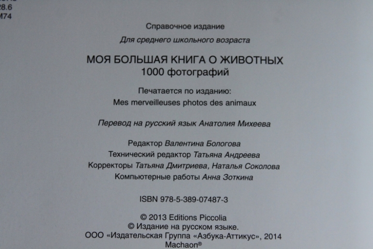 Моя большая книга о животных. 1000 фотографий. Издательство "Махаон"