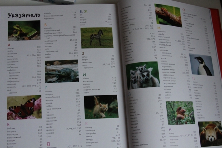 познавательные книги, энциклопедииОна не просто большая - она очень большая и тяжелая. Но не думаю, что можно это считать недостатком :) Это не энциклопедия - это фотоальбом! Чуть-чуть информации о животном есть, разбивка по зонам обитания тоже есть, но все же книгу эту не обязательно изучать - её надо рассматривать!