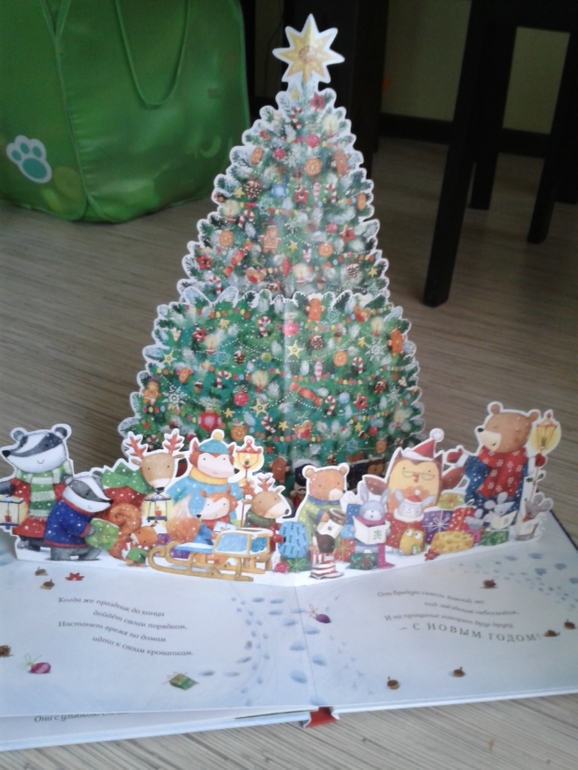 Очень детская, новогодняя книга с сюрпризом - огромной объемной ёлкой в конце книги.