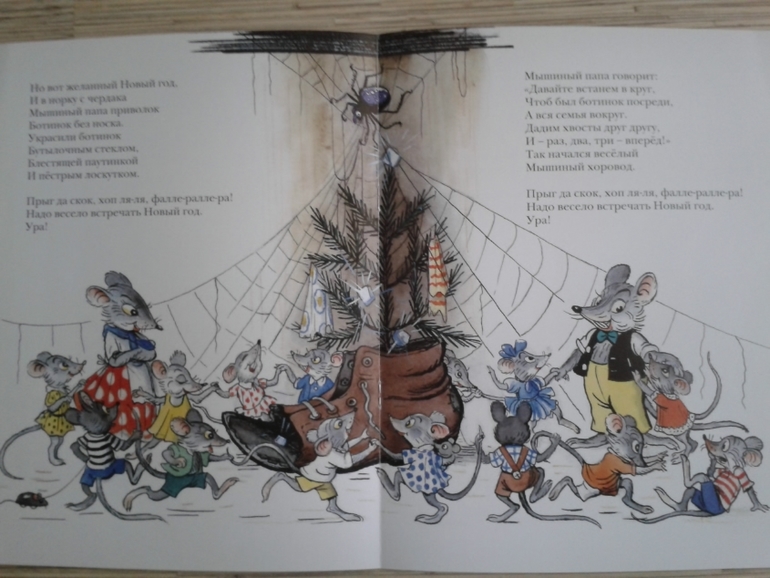Прыг да скок хоп ля-ля, фалле-ралле-ра! Надо весело встречать Новый год. Ура! Замечательная Новогодняя история с чудесными иллюстрациями о том, как семейство мышей собирается отмечать праздник.