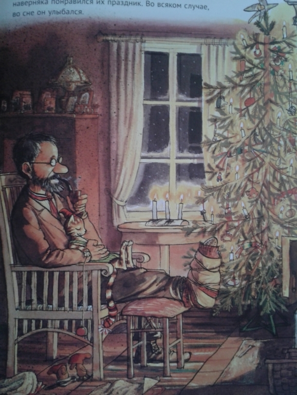 Рада что подняла вам настроение. Думала, что посты с Новогодними книгами уже никто и не читает. В книге про Петсона и Финдуса еще очень много всяких художественных шуток. Очень приятное сочетание хорошего текста и таких вот позитивных иллюстраций.