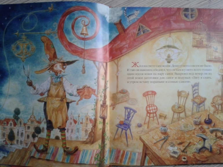 И совсем эта книга не случайно в Новогодний обзор попала. Мне кажется, что Братья Гримм просто забыли упамянуть, что все эти чудеса происходили с сапожником в канун Нового года (или Рождества). Иллюстрации Ломаева