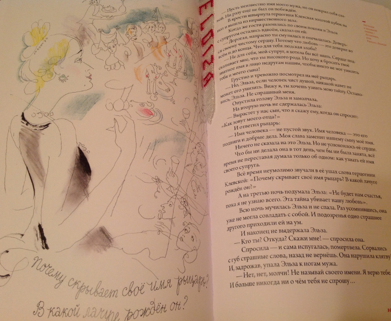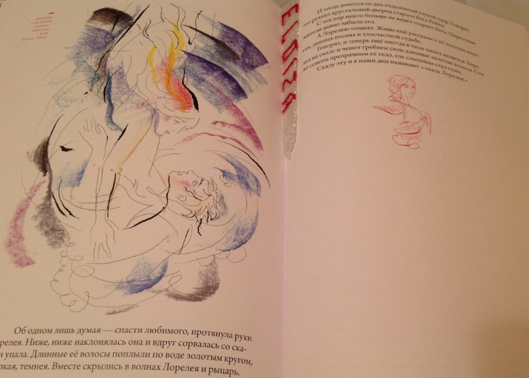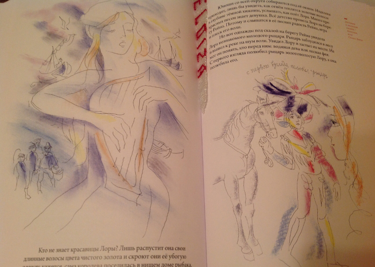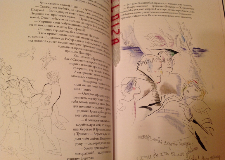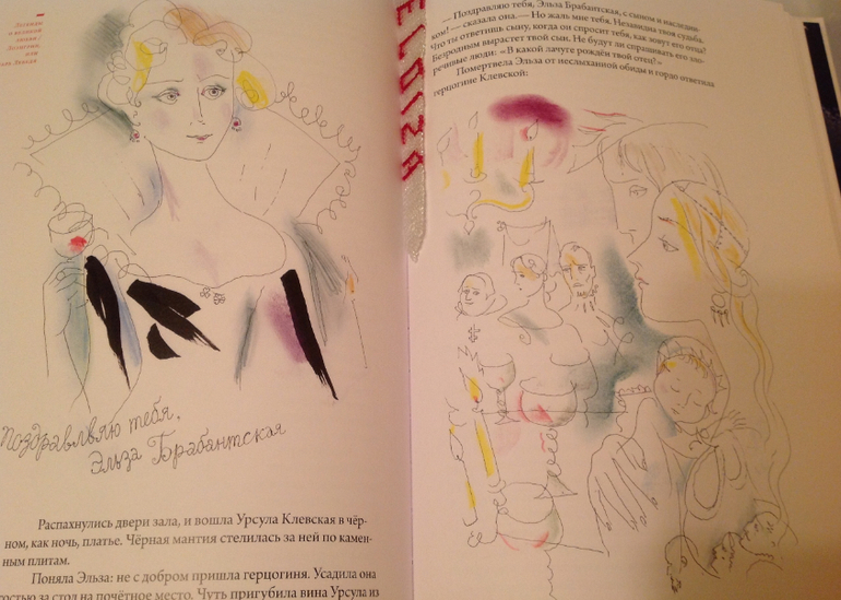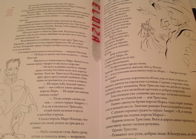 Я вот немного не по теме. Помню, был какой-то фильм, в котором герой говорил: никогда не доверяй девушке, которая целует тебя с открытыми глазами. Это я про разворот со сказкой "Флор и Бланшефлор" :)А книга красивая, воздушная. Красиво. При всей моей настороженности к Трауготам, которых я безоговорочно принимаю только в Байкальских сказках.