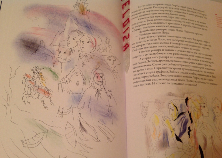 Мне хотелось бы показать каждую ее страницу как самостоятельную картину, но это, увы, невозможно. Фотографии не могут передать прелести иллюстраций. И все-таки я не могу удержаться, чтобы не показать хотя бы некоторые из них.
