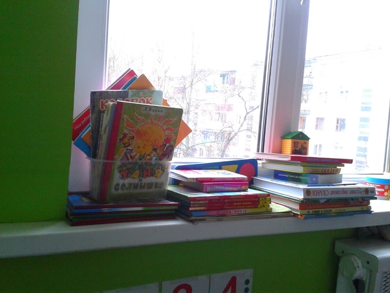 На подоконнике на кухне, т.к. любим во время еды читать...