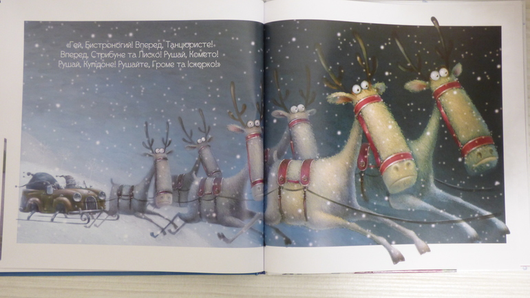 "Эй, Быстроног! Вперед, Танцор! Вперед, Попрыгун! Двигайся Комета! Двигайся, Купидон! Двигайся, Гром и Искорка!