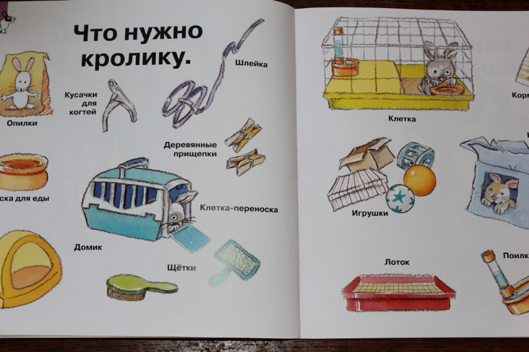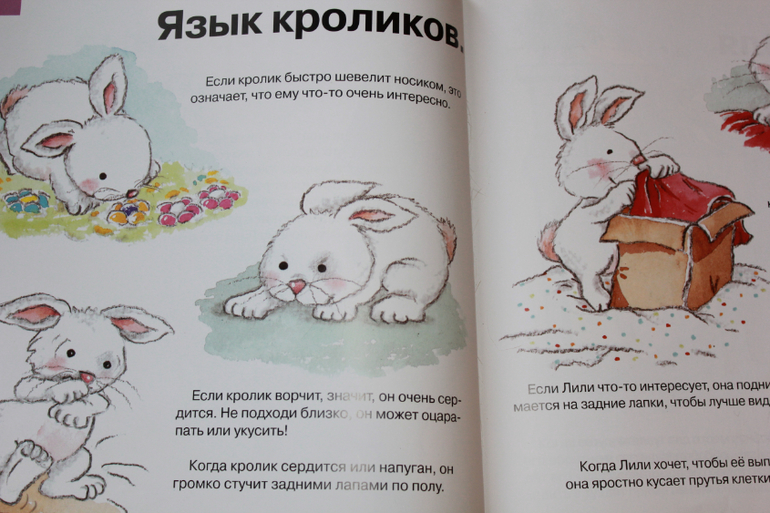 Кролик теоретически ожидается к шестилетию (я уже почти смирилась), и поэтому моя дочь обзавелась столь полезной книжицей. Информация подана в рисунках, естественно, очень краткая, но больше и не надо ребенку. В любом случае, все это ляжет на ваши плечи, ха-ха.