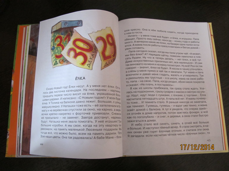 Как раз в канун Нового года можно почитать рассказ "Ёлка". О том, как семья выдумщиков и фантазеров находит применение своей новогодней елки круглый год. Этот рассказ мой самый любимый.