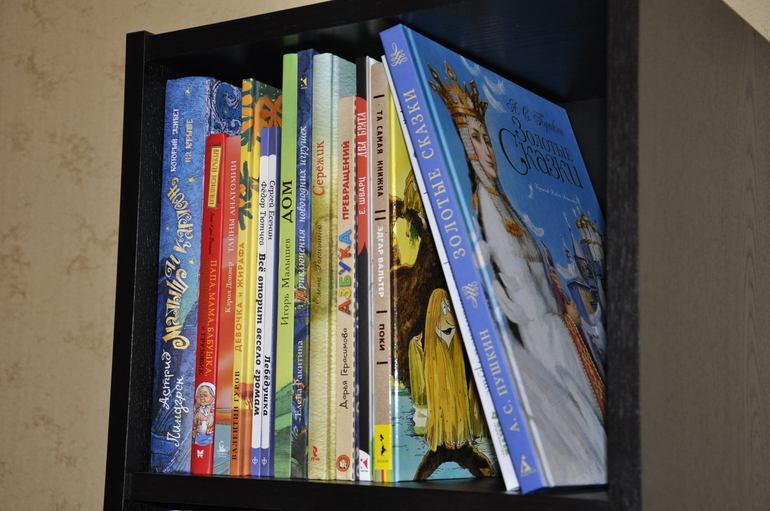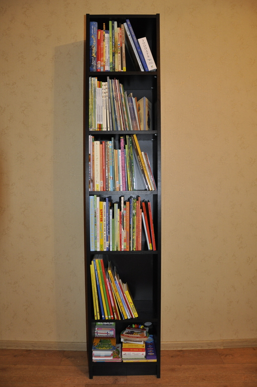 Шкаф планировался 2 раза шире, но смущает меня нагрузка на полки, решила два маленьких. Правда, спонсор нашего хобби — папа Читателя — отказался покупать сразу два:( Кстати, папа Читателя — это наш большой сдерживающий фактор в книгоголизме.На наш возраст почти полшкафа, то бишь половина книг. Мало, по-Вашему?