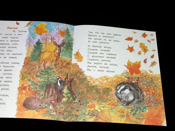 В книгах стихотворения Тютчева, Пушкина, Блока, Есенина, Чёрного и других известных поэтов.