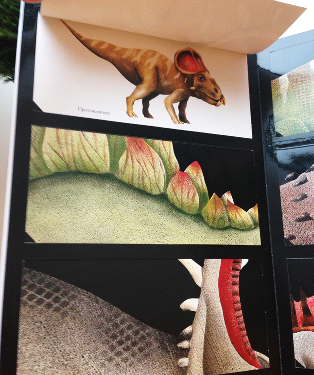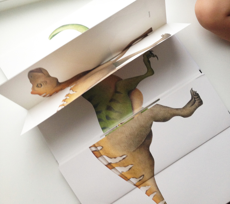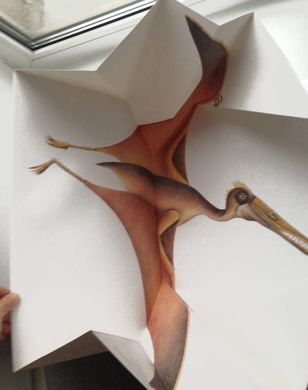 А под конец и вовсе масштабная идея с птеродактилем, буквально вылетающим на изумлённого читателя: