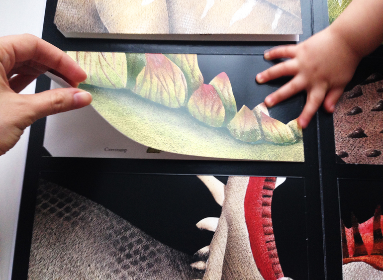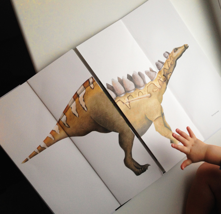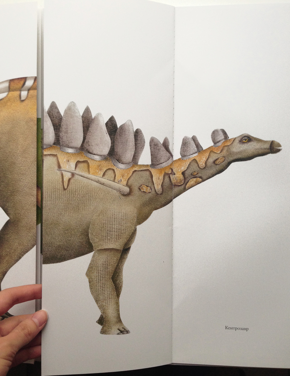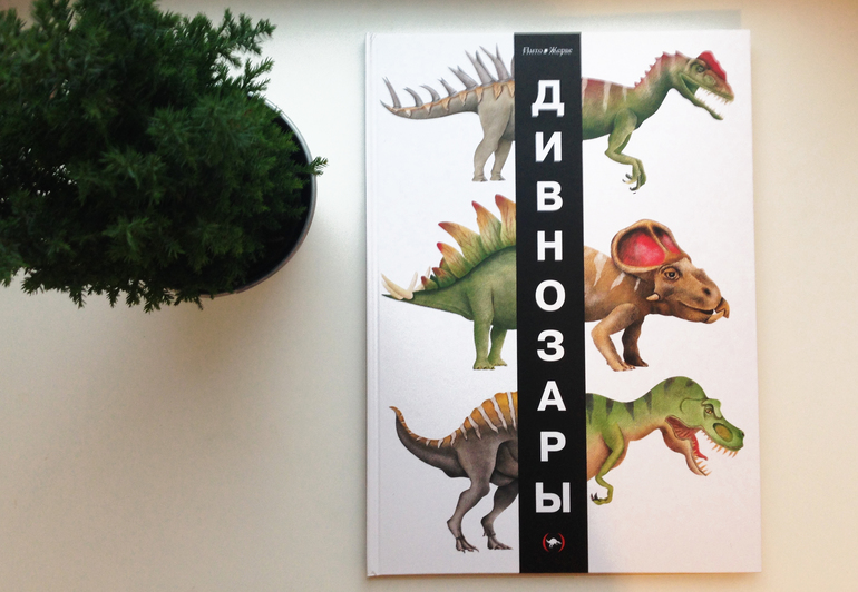 Как видите, помимо её размера сразу очевидны ещё два момента - книга очень яркая и сочная и посвещена динозаврам. И это прекрасно! По крайней мере, в нашем случае, потому что всем известно, как мальчишки любят эту тему.