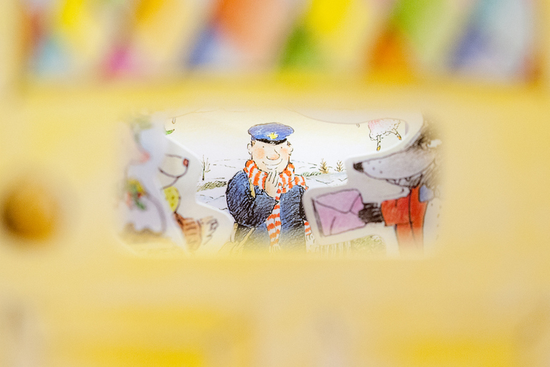 и если заглянуть в окошко, то будет видна галерея персонажей. Каждый из которых протягивает почтальону письмо.