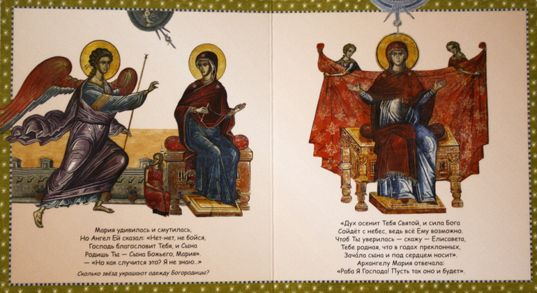 Текст и иллюстрации рассказывают историю Рождества Христова, но адаптированные для малышей. Не смотря на то, что и эти, и другие иллюстрации мы смотрим в оригинале (по аналогии с карточками Шичиды), книга на мой взгляд полезная, особенно для тех, кто хочет растить своих малышей в этой традиции и менталитете, как мы с сыночком))