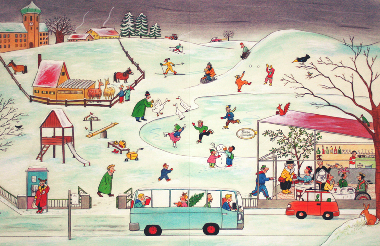 или вот сказочные аутентичные коники, со всего галопа несущие расписные сани, то чего так не хватает в современных зимних книжках((