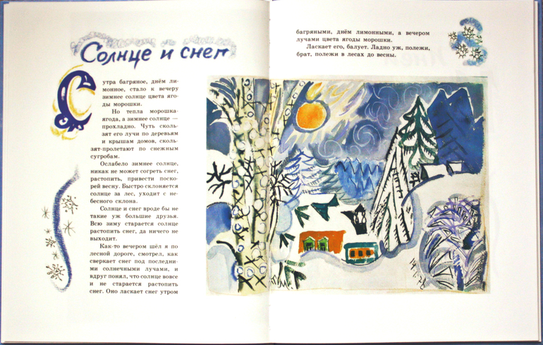 Вообще, Маврина большой художник и я очень рекомендуюкупить серию этих книг или какие-то книги выборочно (как сделаем мы с сыночком) как можно раньше, особенно если вы хотите что бы у вашего ребенка развивалось художественное мышление или если вы заметили у него художественные способности и планируете их развивать. Несмотря на то, что в купе с невероятно поэтичными рассказами Ю. Коваля, книги адресованы скорее более взрослым деткам, живопись Мавриной школьником, если они познакомятся с ней впервые именно тогда, будет скорее всего уже не понятна (т.е. казаться детской мазней из серии "любой так сможет"), а малышам, я уверенна, очень понравится, по крайней мере мой Шоколадкин с удовольствием разглядывает картинки и слушает мамины россказни о том да о сем, о солнечных зайчиках на снегу да о серебряных струях под фонарями. Так же эти книги будут служить вам замечательным подспорьем в наблюдении за природой и ее восхитительными явлениями!!! От души - рекомендую))