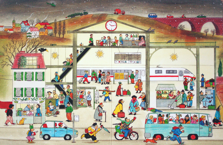 Этот разворот мой самый любимый!!! Он такой атмосферный)) Колючий холод, вокзальная суета, тяжелые одежи и поклажи - нервозный индастрил))