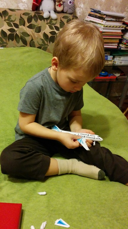 Ваня выбрал пакет с самым ценным: книгами и самолетиком :)