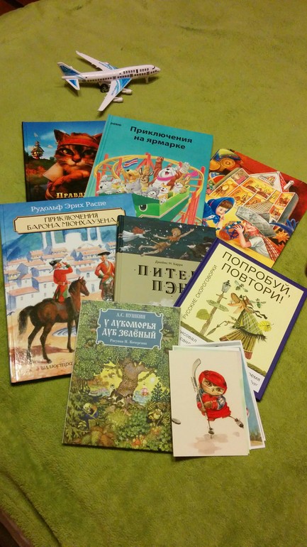 Все книги замечательные, покупку Приключения Мюнхаузена я все откладывала, так как у нас на полочке живут уже двое :) Мой любимый Устинов, как я была опечалина, что от Эгмонт негде уже было найти. Питер Пэн меня очаровал, очень мне нравиться эта серия. Лукоморье от Нигмы была прочитана много много раз, сын очень любит стихи Пушкина, особенно про ученого кота :) Скороговорки оценил наш папа, сказал нужная вещь.