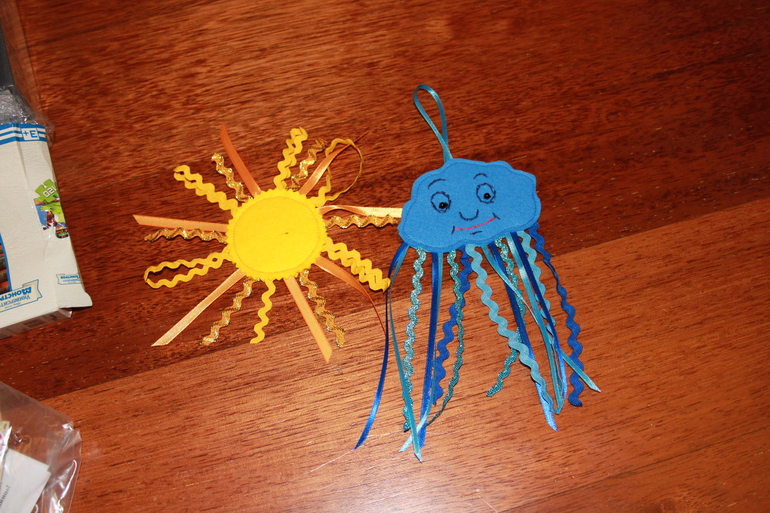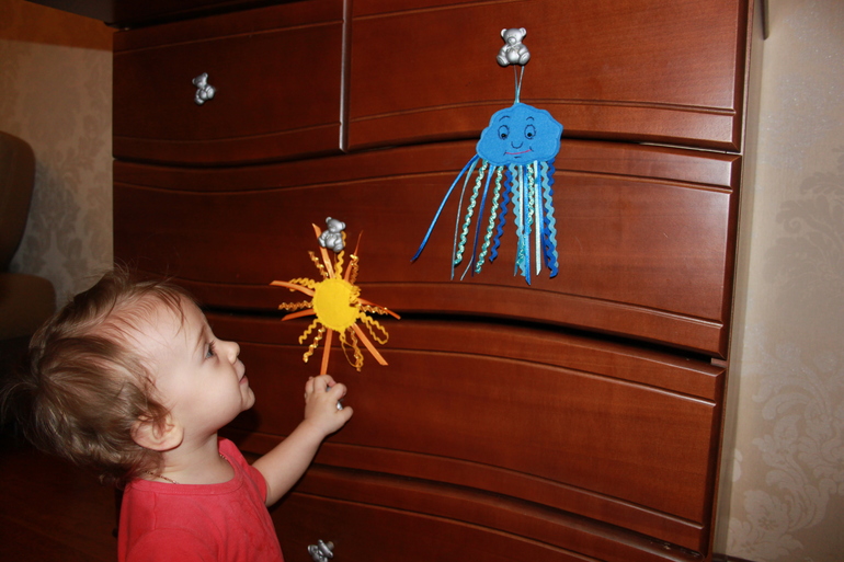 Кстати, не только дети все тащили в разные стороны, но и кот. Который пытался стырить облачко с дождиком, хорошо, что я его поймала на месте преступления, а то потом с кого спрашивать?!