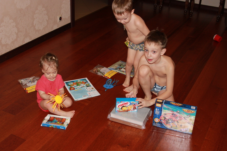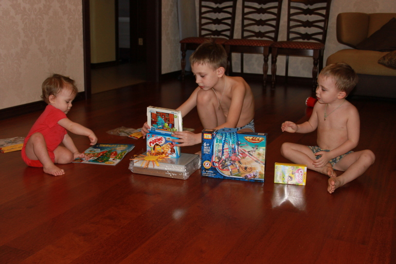 Дети , как цыгане, налетели на подарки, хватая каждый раз что-то новое, с радостным криком начинали мне об этом сообщать. Ну я их попросила все не растаскивать, чтоб успеть хоть запечатлеть, немного.