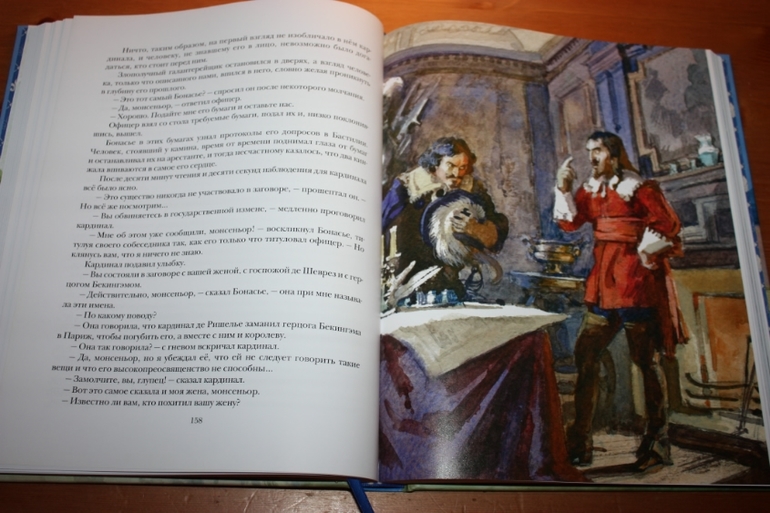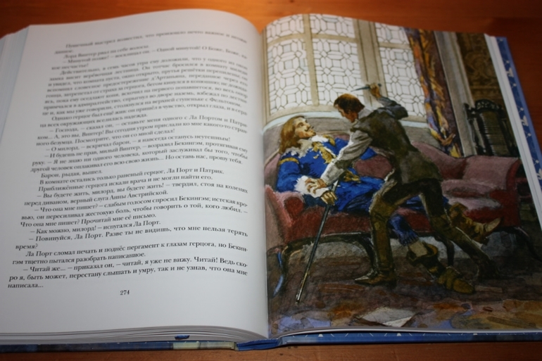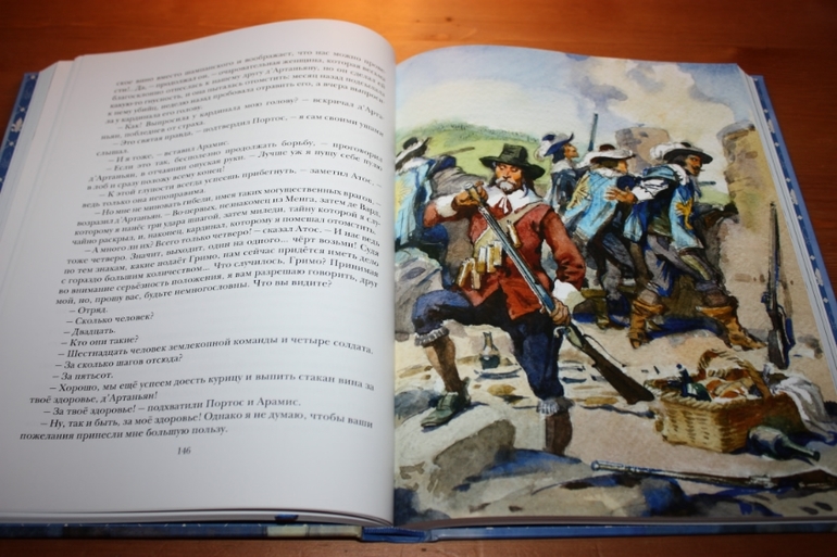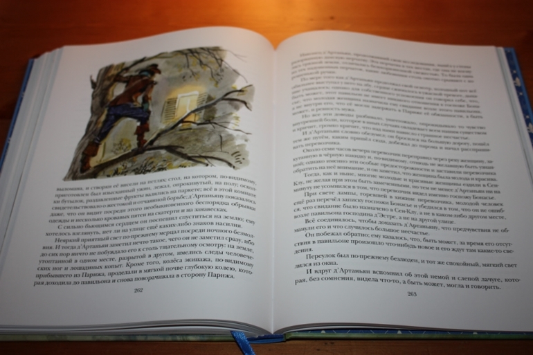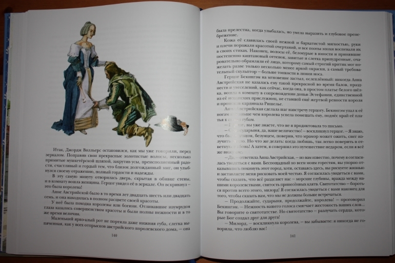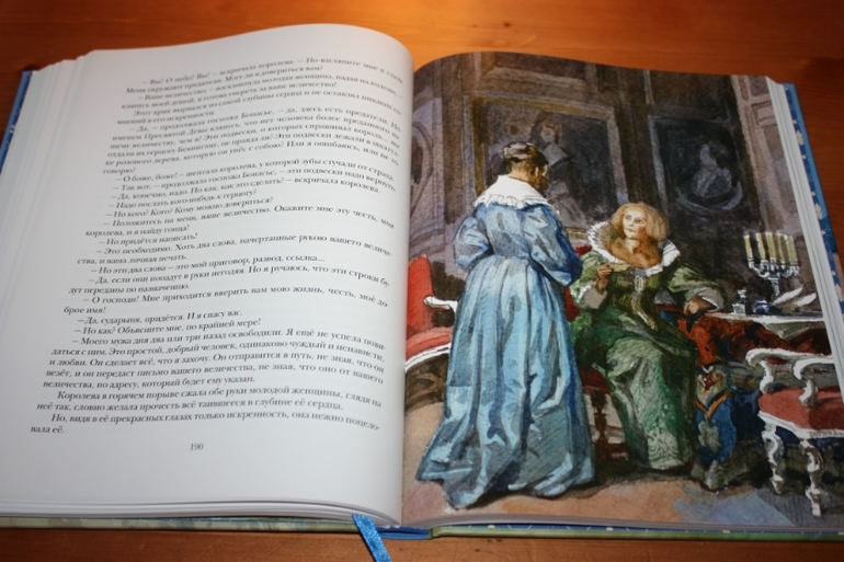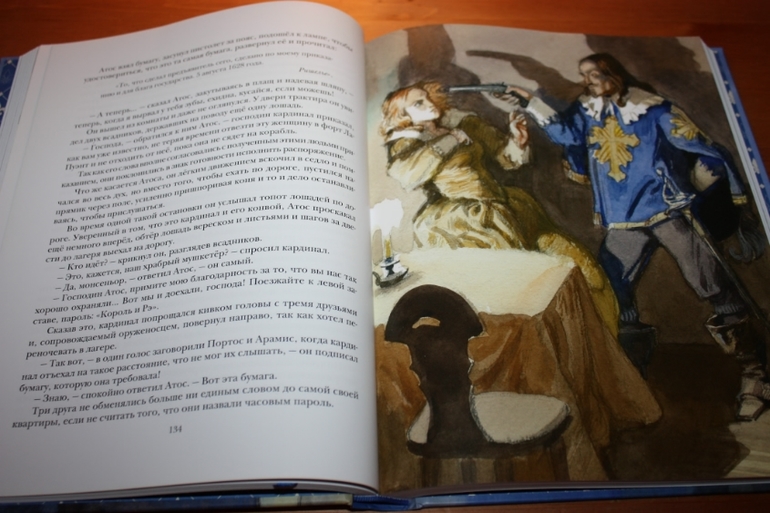 Но для такого взрослого произведения, я считаю, вполне достаточно. Направление для читателя задано, остальное доделает фантазия. Образы героев визуализированы здорово... Правда, вот тут я словлю пару килограммов помидоров... "Трёх мушкетёров" целиком я ещё никогда не читала... Начинала несколько раз, но всё как-то не складывалось. То в детстве книгу у дедушки забыла, пока из другого города пересылали домой, я уже что-то другое читала... То в подростковом возрасте начинала читать, а тут что-то важное и нужное для школы или для подготовительных курсов надо было прочитать в большом количестве... То позже во взрослом возрасте никак книга вовремя под руку не подворачивалась... Сейчас я думаю, что просто судьба такая: прочитать впервые роман целиком именно в таком шикарном оформлении