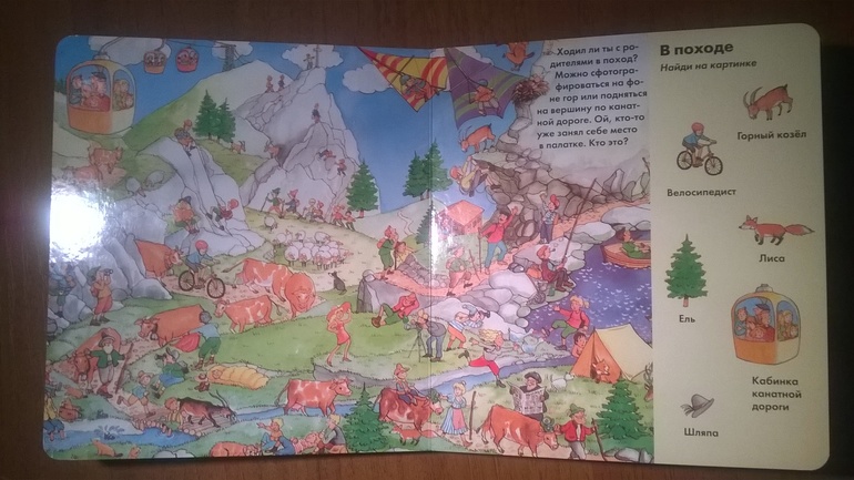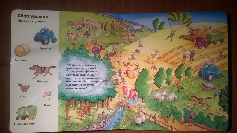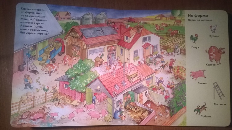 Страницы у книги толстенные, даже толще, чем у виммельбуха, закругленные, переворачивать удобно. Картинки мне у виммельбуха понравились больше, они поярче, покрасочнее, но это, сами понимаете, на вкус и цвет))