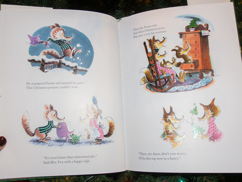 Однако, и у лис жилплощадь такова, что елка там очень даже к месту, но размер бы ей поскромнее. И ... легким движением лапы елка разъединяется с верхушкой. После чего дерево занимает достойное место на лисьем комоде.