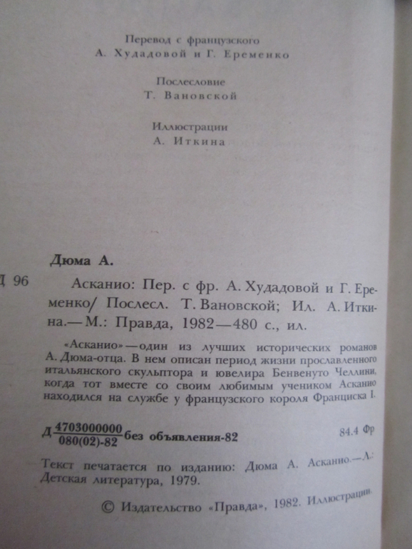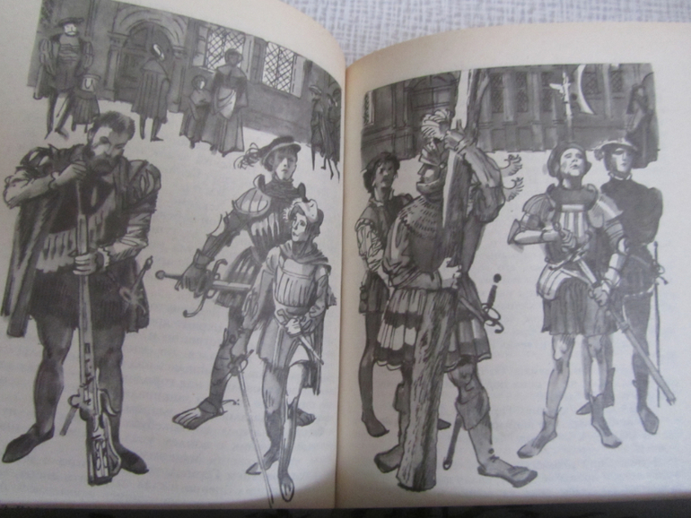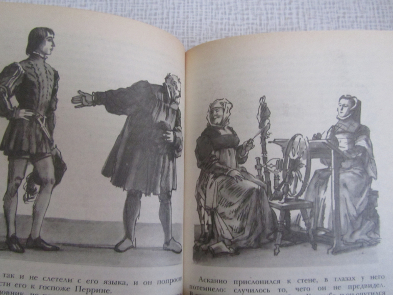 Просматривала я как-то раз книжные полки у свекрови и наткнулась на книги с романами Дюма, там были и Граф Монте Кристо, и Королева Марго и что -то еще очень известное(уже не помню). Искала я собственно говоря "Три мушкетера" ( я думаю многие поймут мой интерес сейчас к этому роману, который я в детстве не читала к сожалению). И вот увидела книгу с неизвестным мне названием "Асканио" - каюсь о таком романе Дюма я никогда не слышала. Заинтересовалась, начала листать и увидела, что иллюстрации к нему нарисовал Иткин!Интерес к этому роману естественно возрос еще больше и вот сейчас я нахожусь в процессе чтения этого загадочного для меня романа