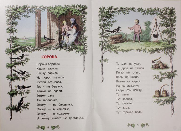 Вторая наша книжка - это дочкина любовь с первого взгляда! Книжка "Ладушки" с иллюстрациями Ю. Васнецова стала нашей любимицей очень надолго и вытеснила на какой-то период все другие книжки. Вот что значит найти своего иллюстратора! Это вообще была наша первая книжка которую дочка стала не просто листать и смотреть картинки, а давала мне прочитать ее прочитать ей. Причем читать мы ее сразу стали от корки до корки. Сейчас чуть пореже достаем с полочки, но когда достаем ребенок приходит в восторг. А потешки и песенки из этой книжки я ей постоянно сама рассказываю. Жалко только одно - уж больно тонкие странички в книжке, быстро затираются и мнутся. А содержимое ее выше всяких похвал! Смотрите сами (показываю частично):