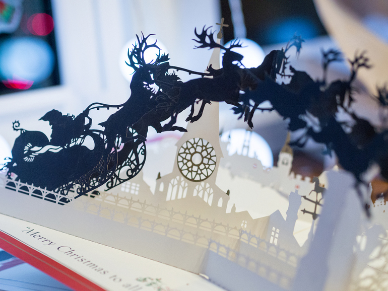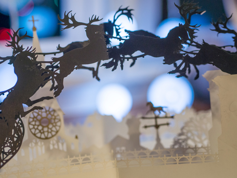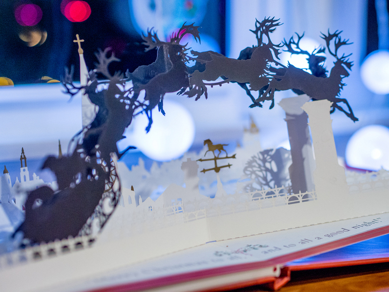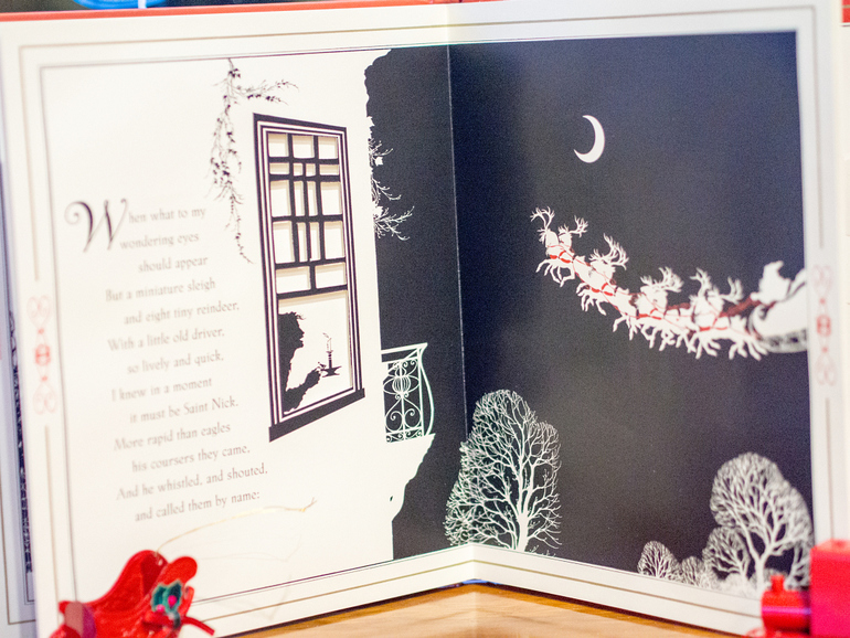 На последний разворот можно смотреть очень долго, наблюдая за беззвучным полетом Санты над спящим городом и гадая, какие подарки он припас в своих санях для обитателей нашего дома. А потом погасив все огоньки, и оставив под елкой молоко и печенье, отправиться спать, чтобы не спугнуть волшебный полет.