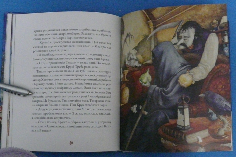 Сказка о том, как в маленьком городке, владелец ломбарда решает откупится от смерти чужими душами. В этом же городке живет сирота Тишка, с дедушкой. Дедушка зарабатывает тем, что рассказывает сказки и записывает их в книгу. И вот , перед Рождеством, дедушка заболевает и Тишко тратит все деньги, которые он собирал для покупки сладостей, на лекарства. Дедушка работать не может и поэтому закладывает свою книгу со сказками в ломбард, владельцем которого и является пан Крук(Ворон), который заложил смерти свою душу. Все кто обращается к Круку, становятся его жертвами. Но книга сказок оказывается не дописанной, только когда он допишет сказки, вся душа дедушки окажется в этой книге и достанется смерти.