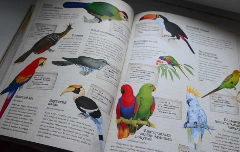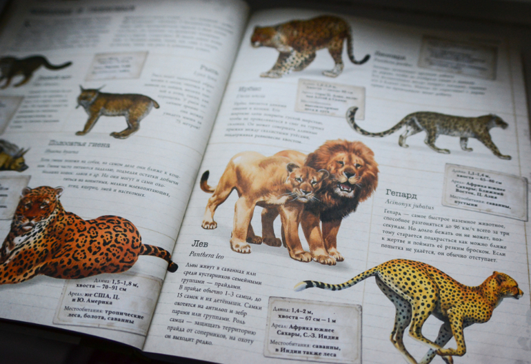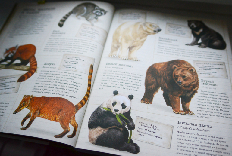 В книге представлено очень много животных, небольшое описание под каждой картинкой, все самое важное и нужное, не перегружена информацией))