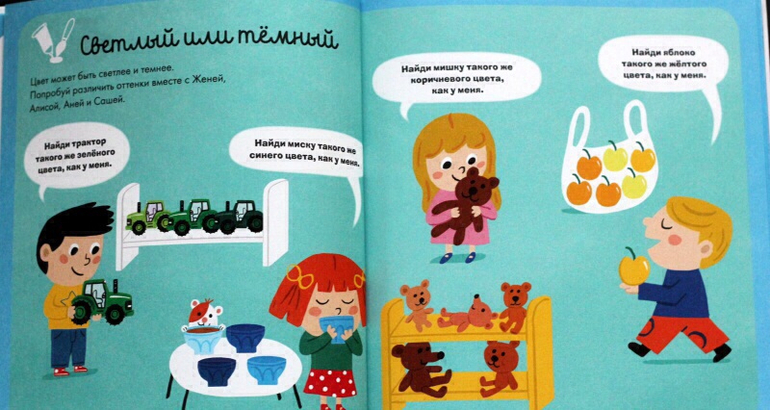 А также Вы разберете такие важные темы как: цвета, формы и размеры, счет до 30, противоположности, понятия «больше-меньше», различия и сходства, а также распорядок дня, дни недели и месяцы, времена года.