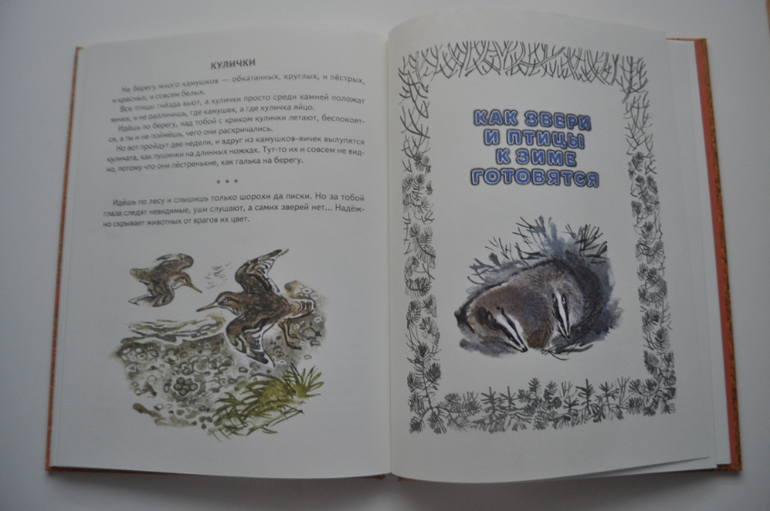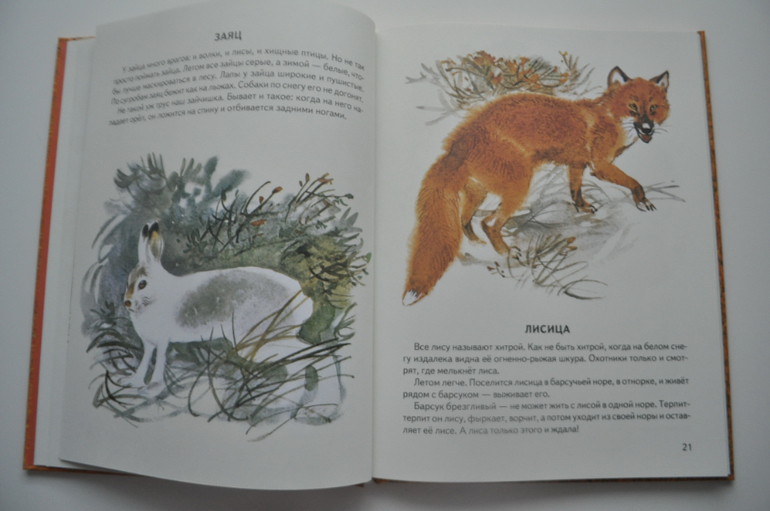 Настроение автора, его отношение передается и нам: про кого-то он пишет с улыбкой («Лосенок такой смешной! Губы толстые, ноги длинные и тонкие - кажется, что они вот-вот переломятся.»), про кого-то с нескрываемым уважением («Говорят: «Неуклюжий, как медведь!» Это неправда. Бурый медведь быстрый, ловкий и очень сильный зверь»). Рассказы хорошо дополняют очень реалистичные рисунки Татьяны Капустиной.