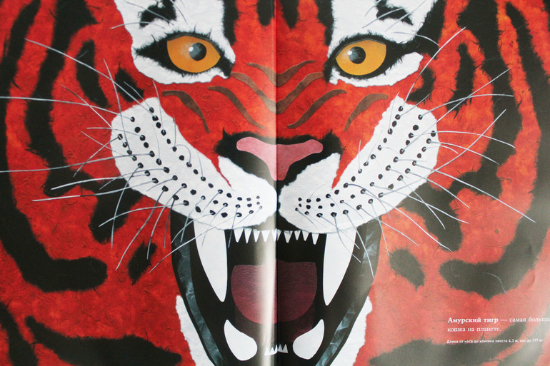 А потом вдруг переворачиваешь страничку, а там - сталкиваешься взглядами, нос к носу с тигром! Амурским - самой большой кошкой на планете!