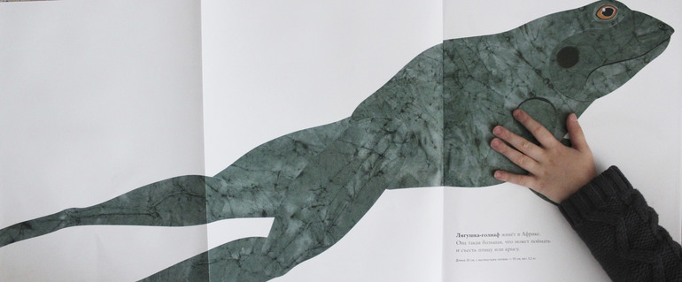 И лягушка тоже разворачивается! Алиса сравнила ее с собой! Оказалось, что если лягушка-голиаф встанет на задние лапки, то достанет Алисе до плеч! Представляете себе такую лягушечку???!!!