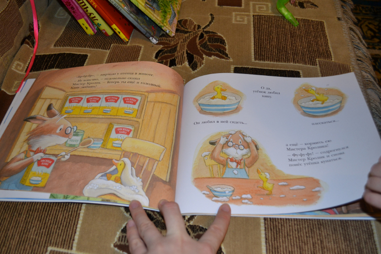 Да, возраст серии книг, из которой "Утиная каша", конечно завышен.С 2 лет смело можно читать, а то и раньше)) И цена немаленькая.Но это же М-П, у них все книги недешёвые...Наверное поэтому у меня всего одна книга из этой серии.Просто остальные не зацепили меня настолько, чтобы разориться на них.А когда я увидела эту, то влюбилась сразу!И больше всего меня тронул смысл самой истории)) Честно скажу, это одна из МОИХ самых любимых книг в нашей детской библиотеке)))