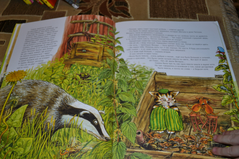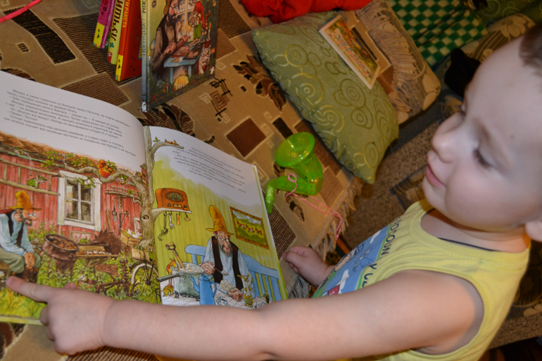 Рада, если было интересно))С Дональдсон у нас по-разному.Всё-таки это не серия книг, и к выбору каждой нужно подойти основательно.В некоторых её книгах акцент на юмор, в некоторых заложен глубокий смысл...Груффало у нас вызвал страхи и стоит на полке без дела, Великан не понравился ни мне, ни сыну, Тимоти Скотт и Если в домике тесно любим, но читаем время от времени.Верхом на помеле сразу стала хитом, но сейчас уже неделю не вспоминаем.Человеткина забросили почти сразу, т. к. смысл всё-таки пока сложноват для нашего возраста.Вот ещё Улитку и кита ждём.На этом наверное пока остановимся)) Так что даже не могу однозначно ответить насчёт этих книг.Но книги по бОльшей части хорошие, и, я думаю, будут интересны и в гораздо более старшем возрасте))) Про козлёнка сын очень любит.И интерес уже довольно долгий.Но бывает, когда мама книгу покупает на свой вкус и любит её, а ребёнок не оценил, а бывает, что ребёнок счастлив, а мама читать уже не может...Вот второй вариант — наш)))Насчёт Лизелотты...Смотря что вы ждёте от книги.Повторюсь, что глубокого смысла в истории нет.Но если вы с дочкой любите книги, в которых иллюстрации можно разглядывать бесконечно (те же Петсон и Финдус похожи на эти книги) и смеяться над ними, то она вам понравится)) Просто есть книги, которые покупают из-за смысла в тексте, а есть такие, которые покупают только из-за иллюстраций))) Редкое исключение, когда в книге сочетаются оба качества)))